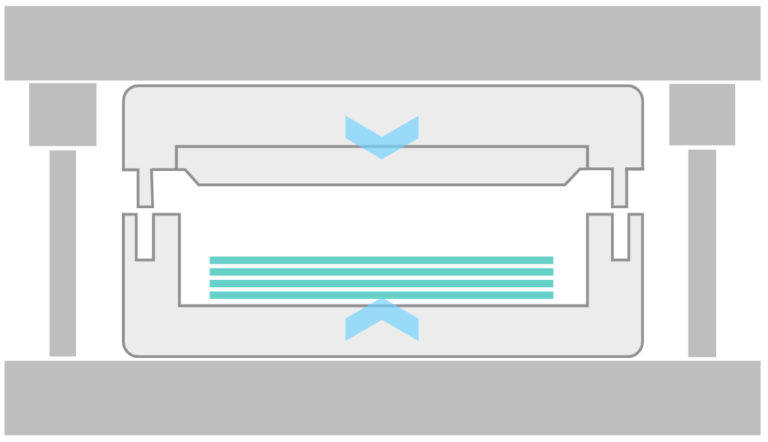 The process is best suited for large structurally reinforced parts requiring two-sided finish. It is best for moderate to high production quantities of between 5,000 and 10,000 parts per year
